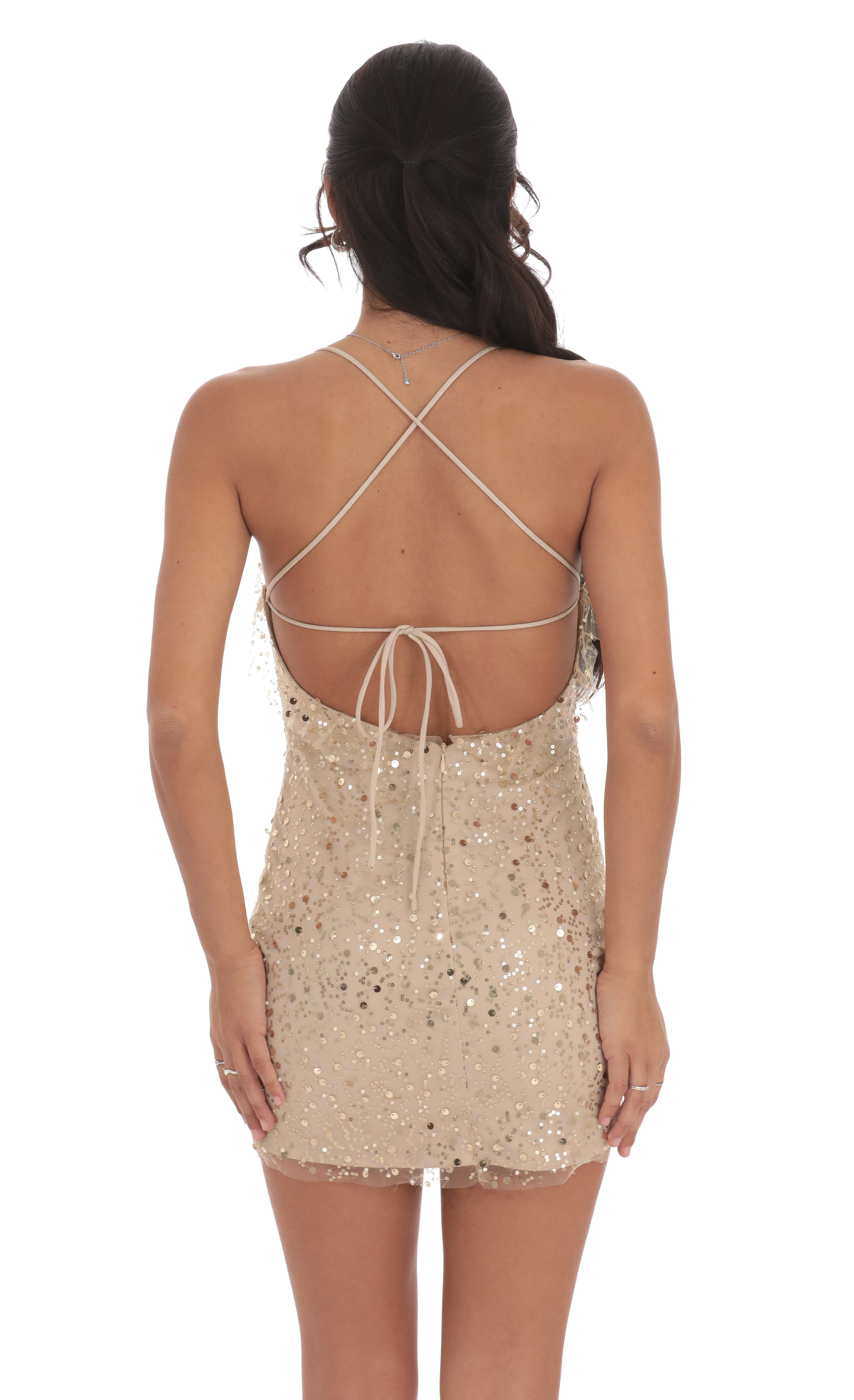 Strapless Sequin Cutout Bodycon Dress in Gold
