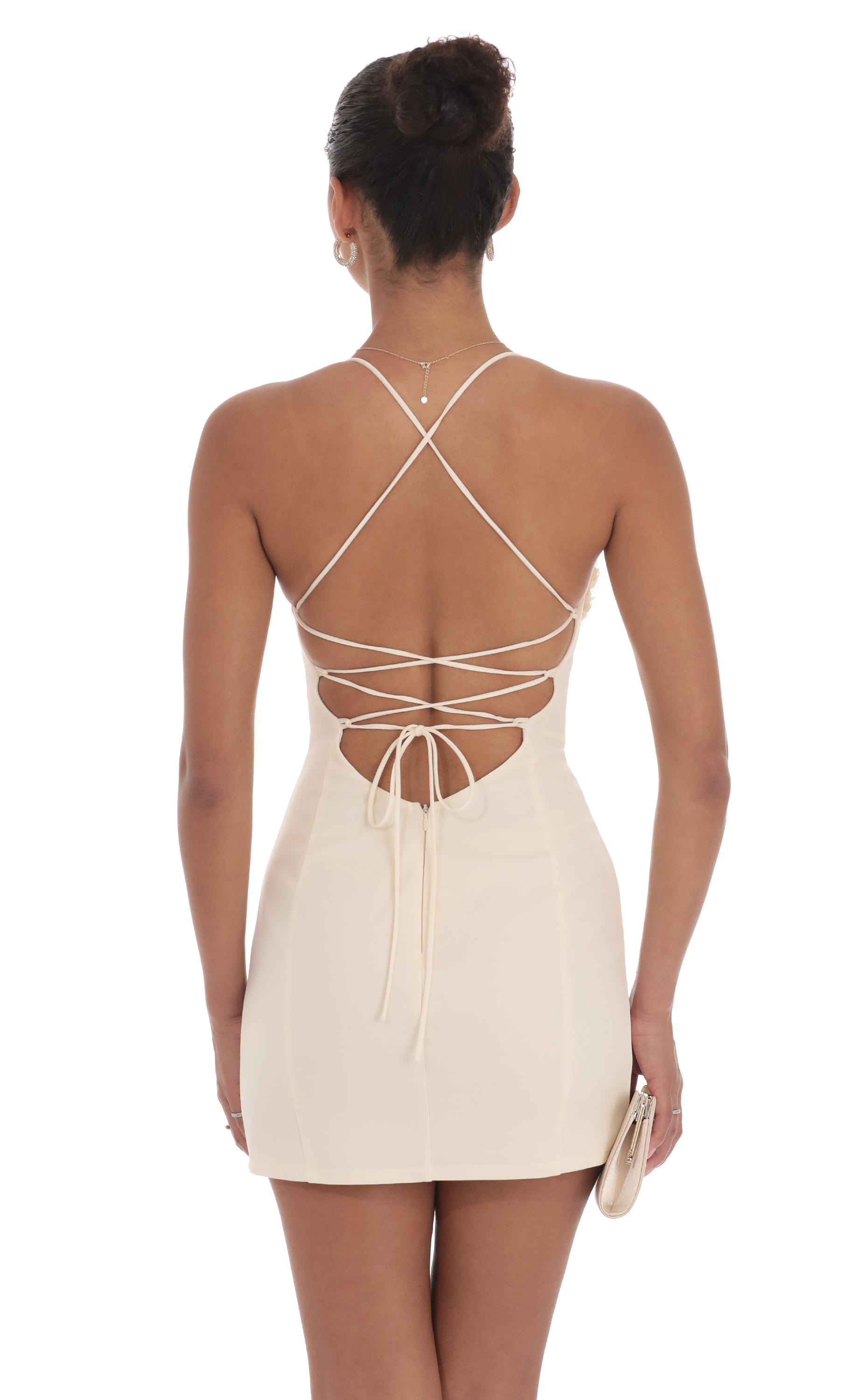 Satin Shoulder Ties Bodycon Dress in Dusty Pink