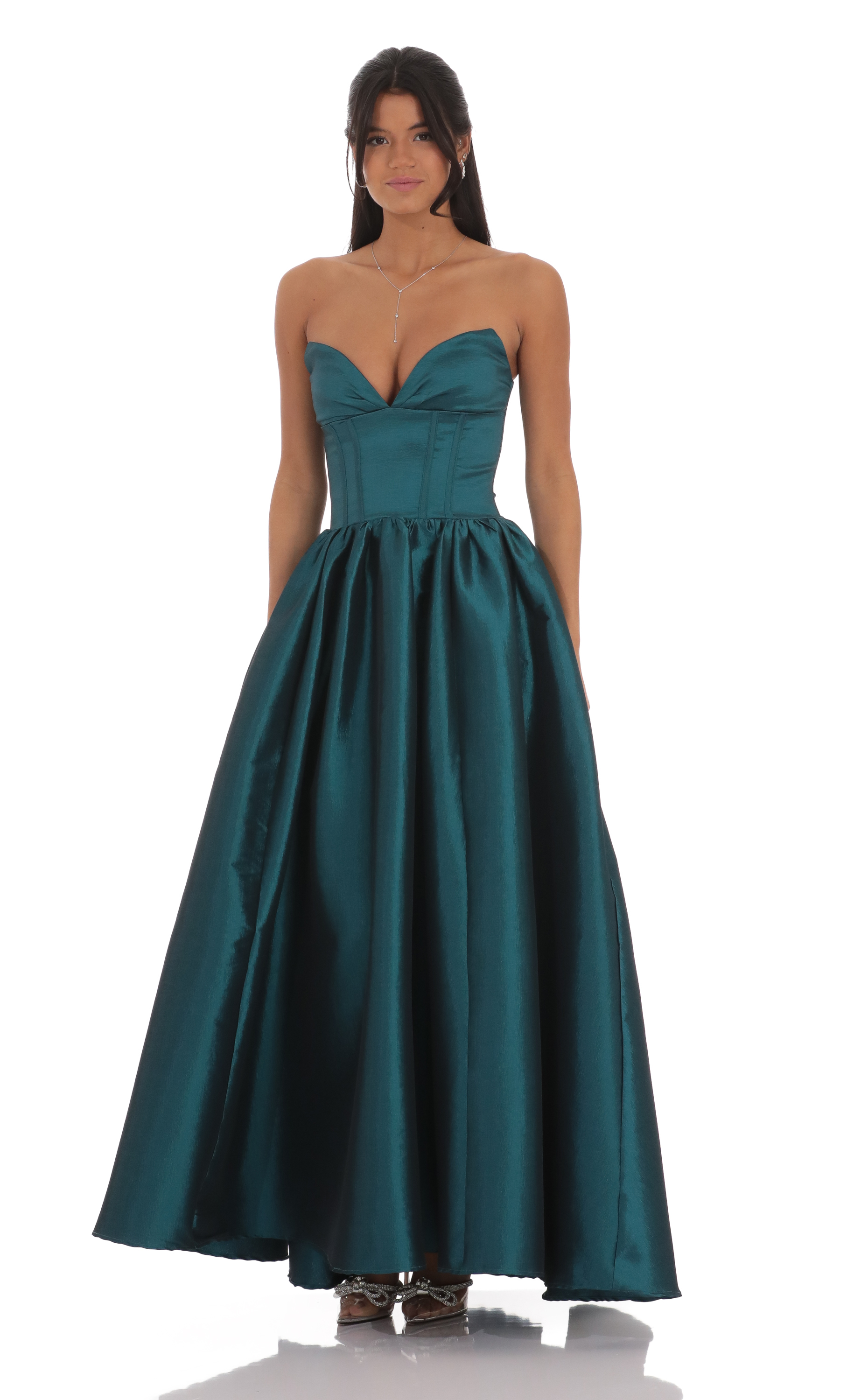 Corset Strapless Gown Dress in Teal