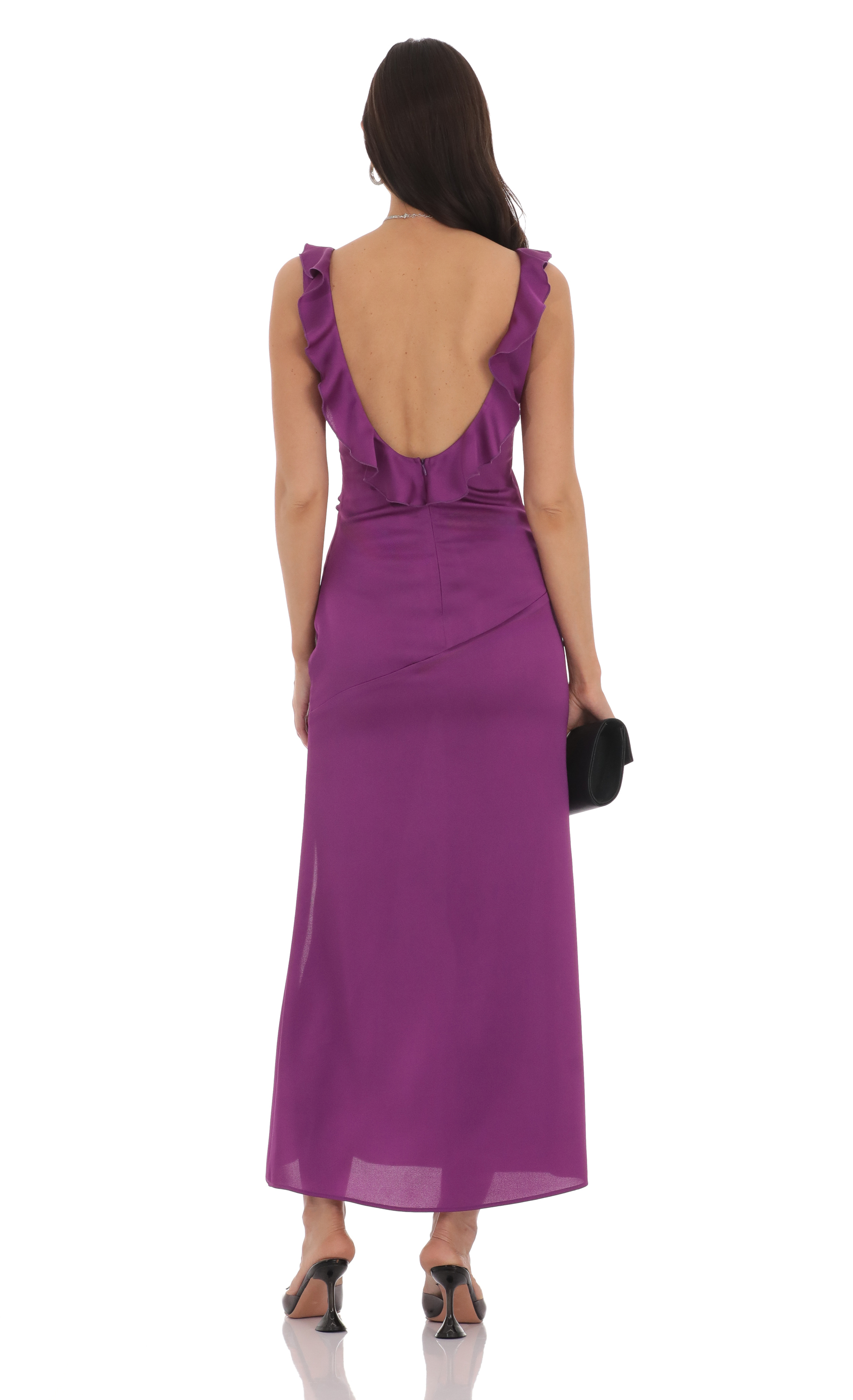 Satin V-Neck Open Back Maxi Dress in Purple