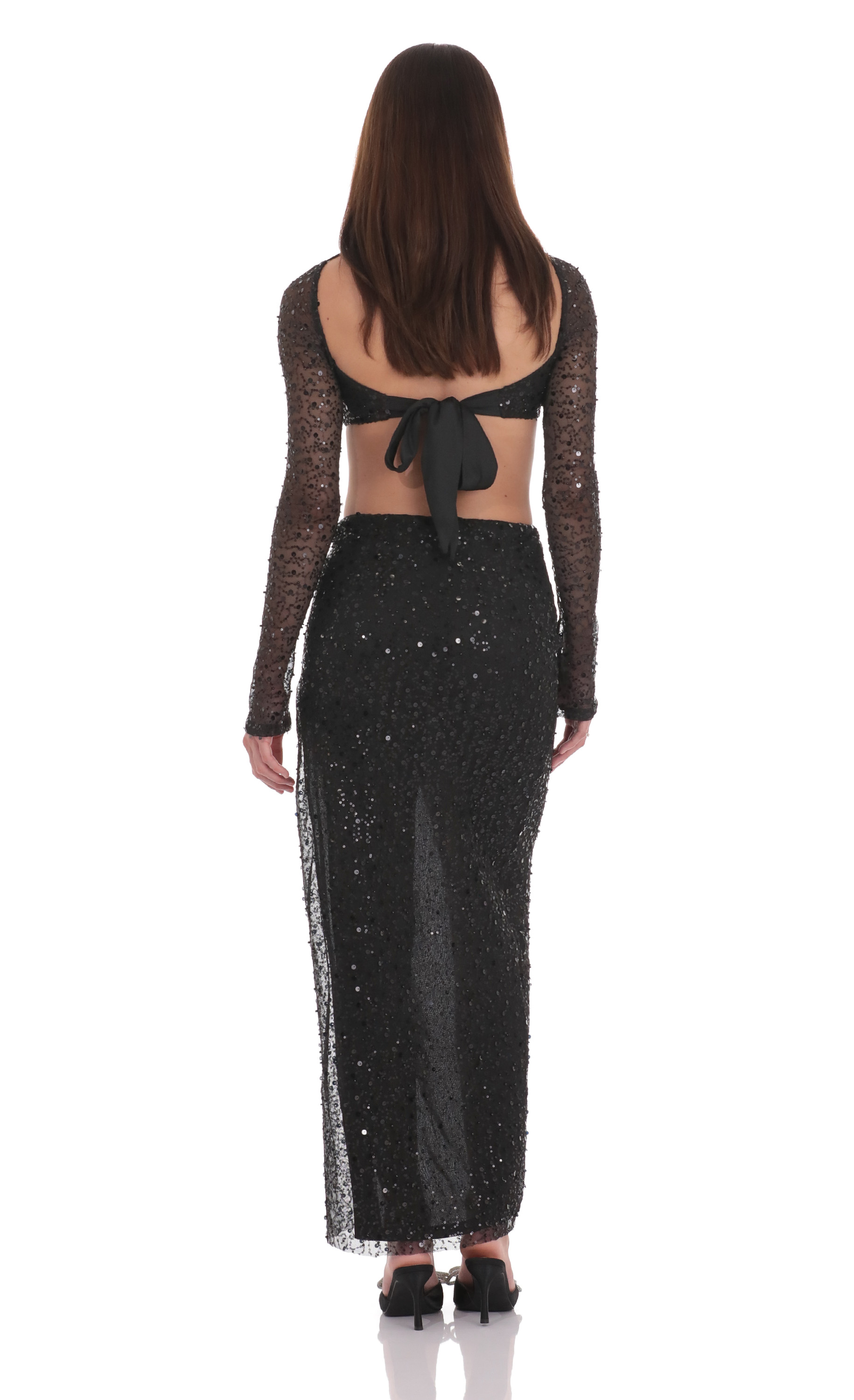Sequin Beaded Two Piece Set in Black