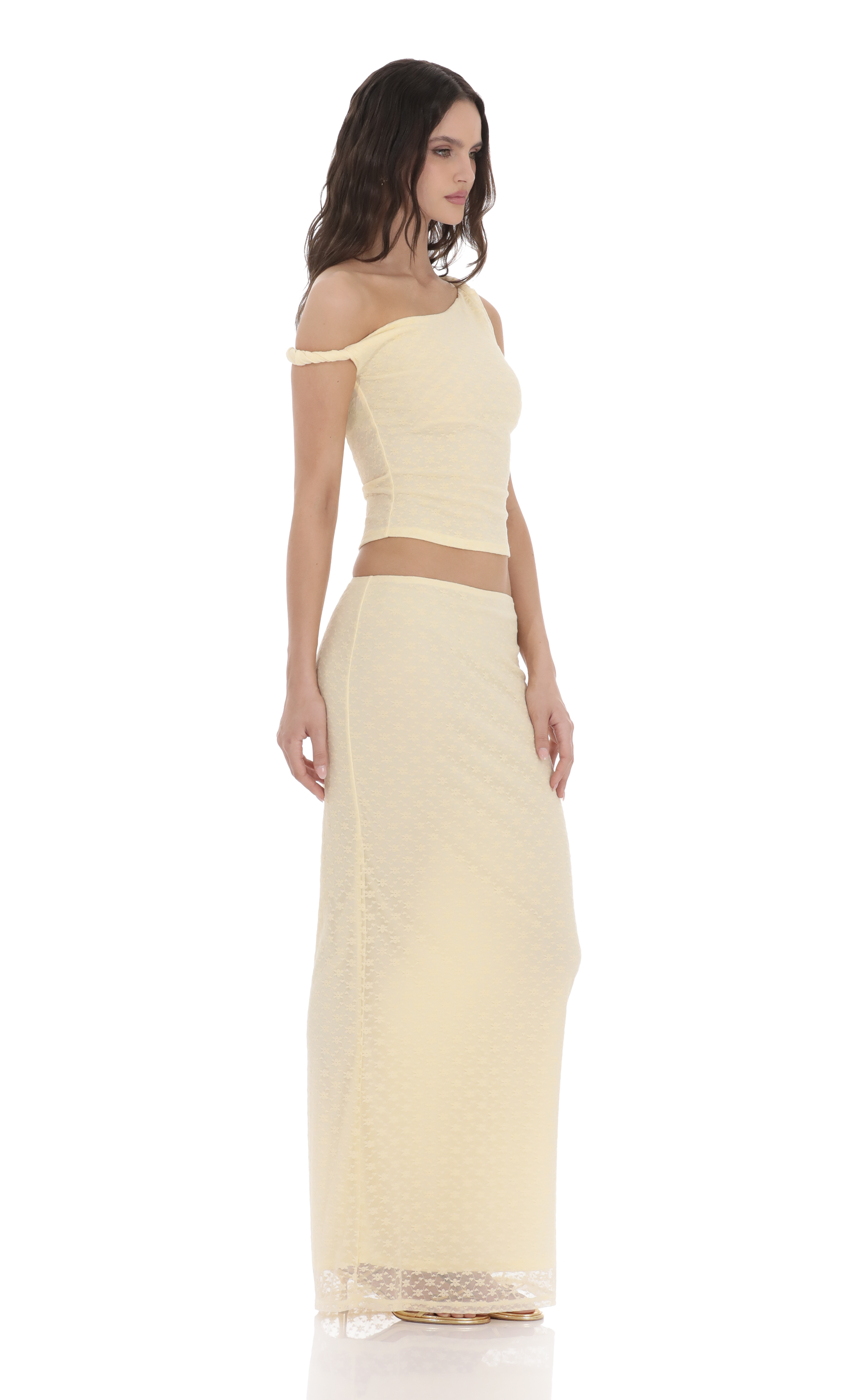 The model is wearing a size small skirt that measures 41in/104cm in length. Please note that measurements are taken when the style is lying flat.