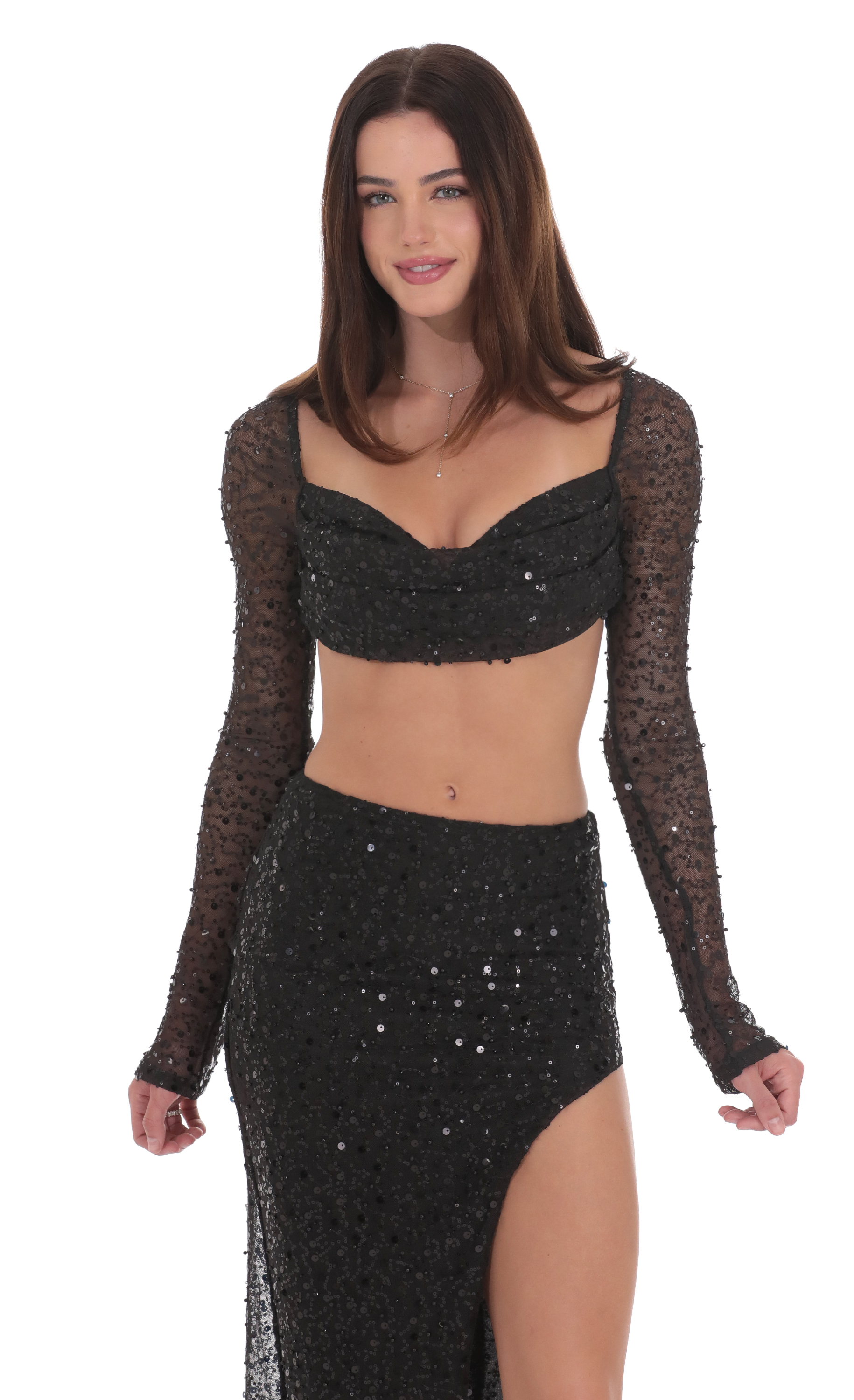Model is wearing a size small that measures 41in/104cm in length. Please note measurements are taken when style is laying flat.