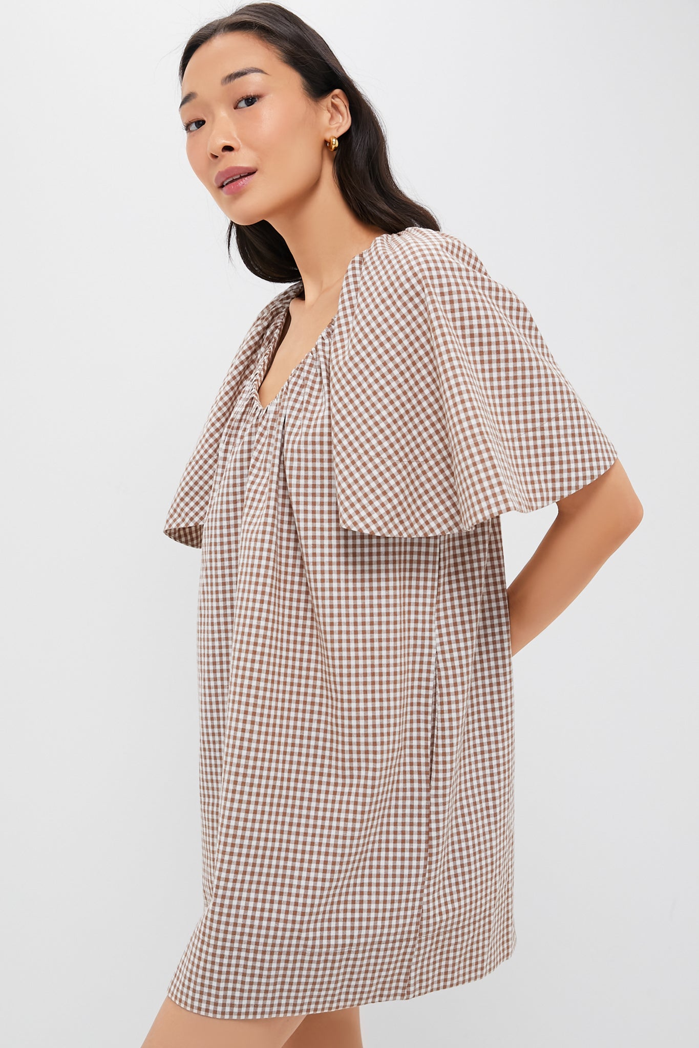 Made for those with a busy lifestyle. there's little this V-neck mini can't handle. A fresh take on our fan-favorite flutter sleeve Finley dress. the Finn has a fun neckline that you'll love wearing for everything from running errands to antiquing adventures. Pair with simple sneakers or strappy sandals for a composed. casual look.