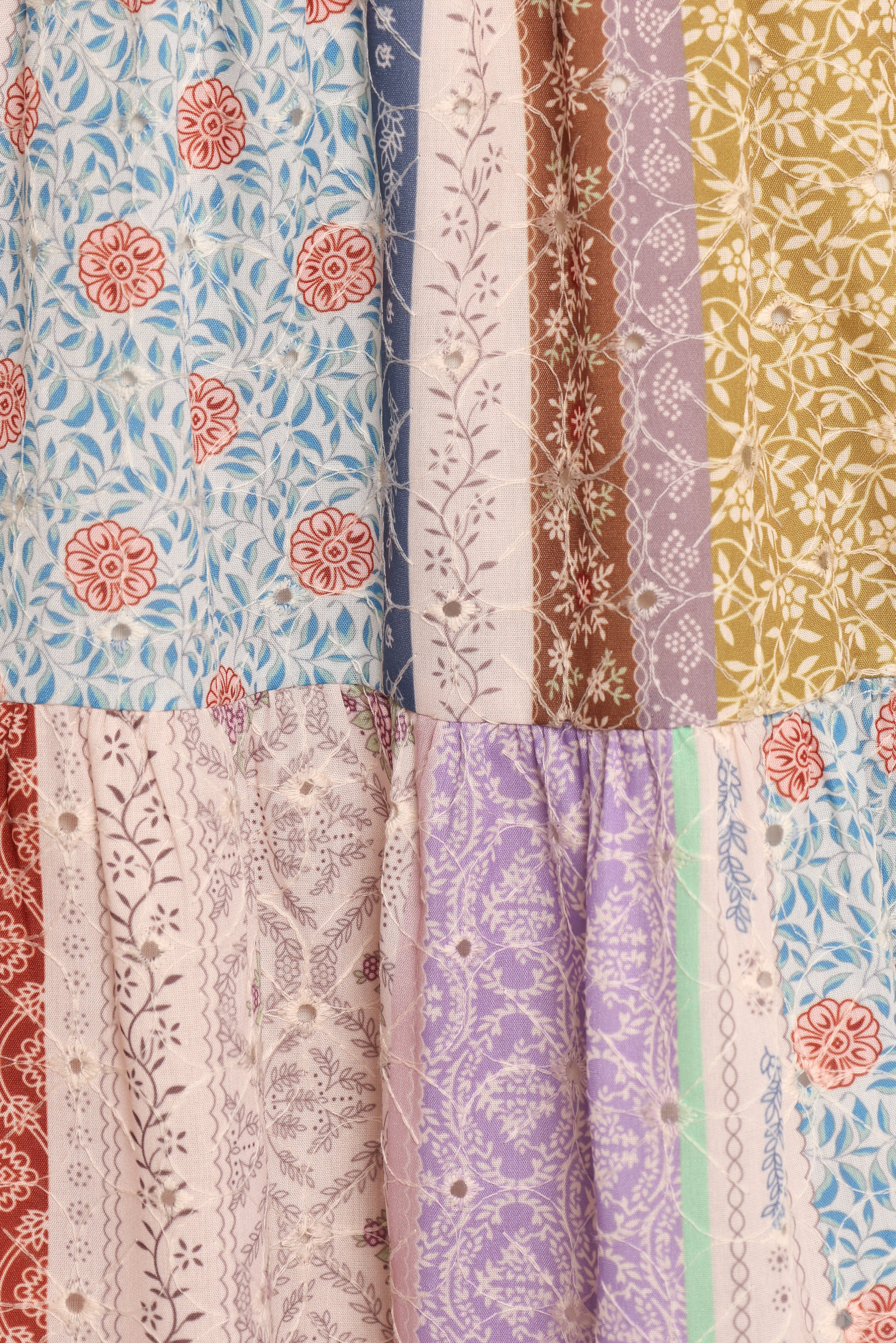 | DETAILS Transform your wardrobe with the Petai Patchwork Maxi Skirt in Botanic Multi. This high-waisted beauty effortlessly combines comfort with style. boasting a playful botanical patchwork print that captures the essence of nature. The elasticised waistband at the back ensures a snug yet flexible fit. allowing you to move with ease throughout your day.